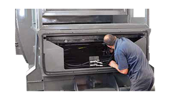 Ce modèle est parfait pour les endroits restreints. Avec les cylindres de compaction en X, la partie compaction est beaucoup plus courte et facilite le chargement des déchets surtout avec des configurations de chargement arrière et avec un verseur.